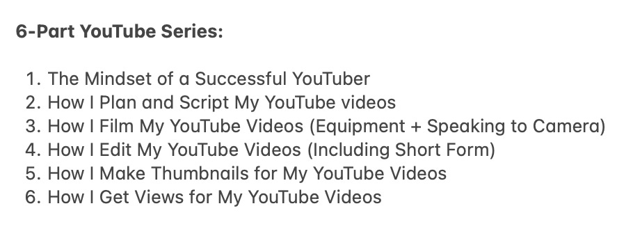 That’s why I’ve decided to kick off a NEW and UPDATED 6-part YouTube series, where I’ll share how I bring my videos to life now that I’ve returned to being a solopreneur.
