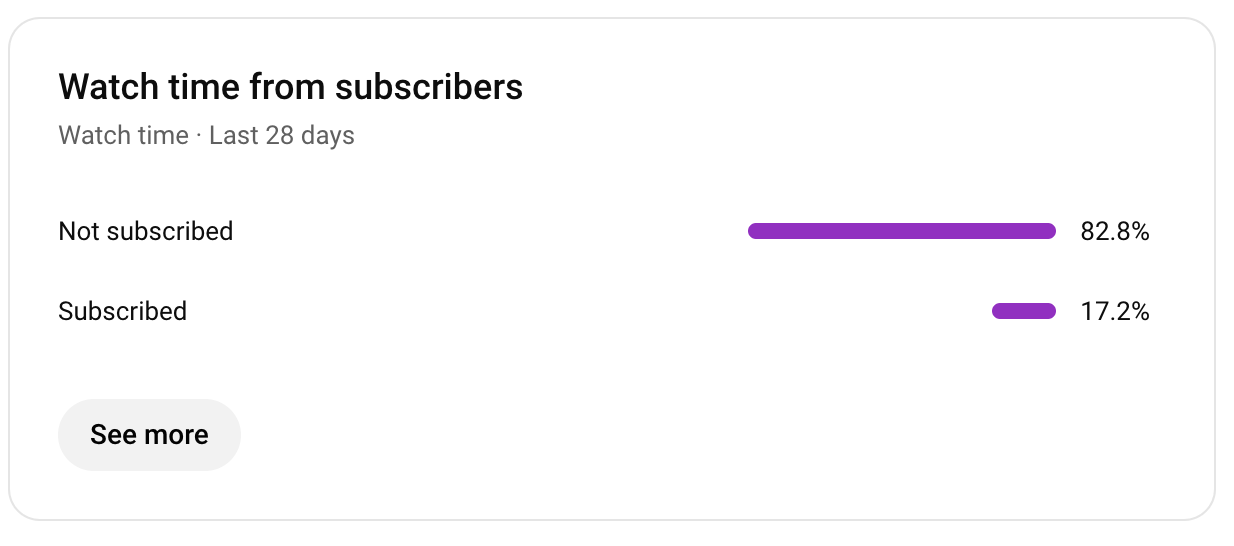 PS: I noticed that 82% of people who watch my videos aren’t subscribed, and only a small percentage have the notification bell turned on: